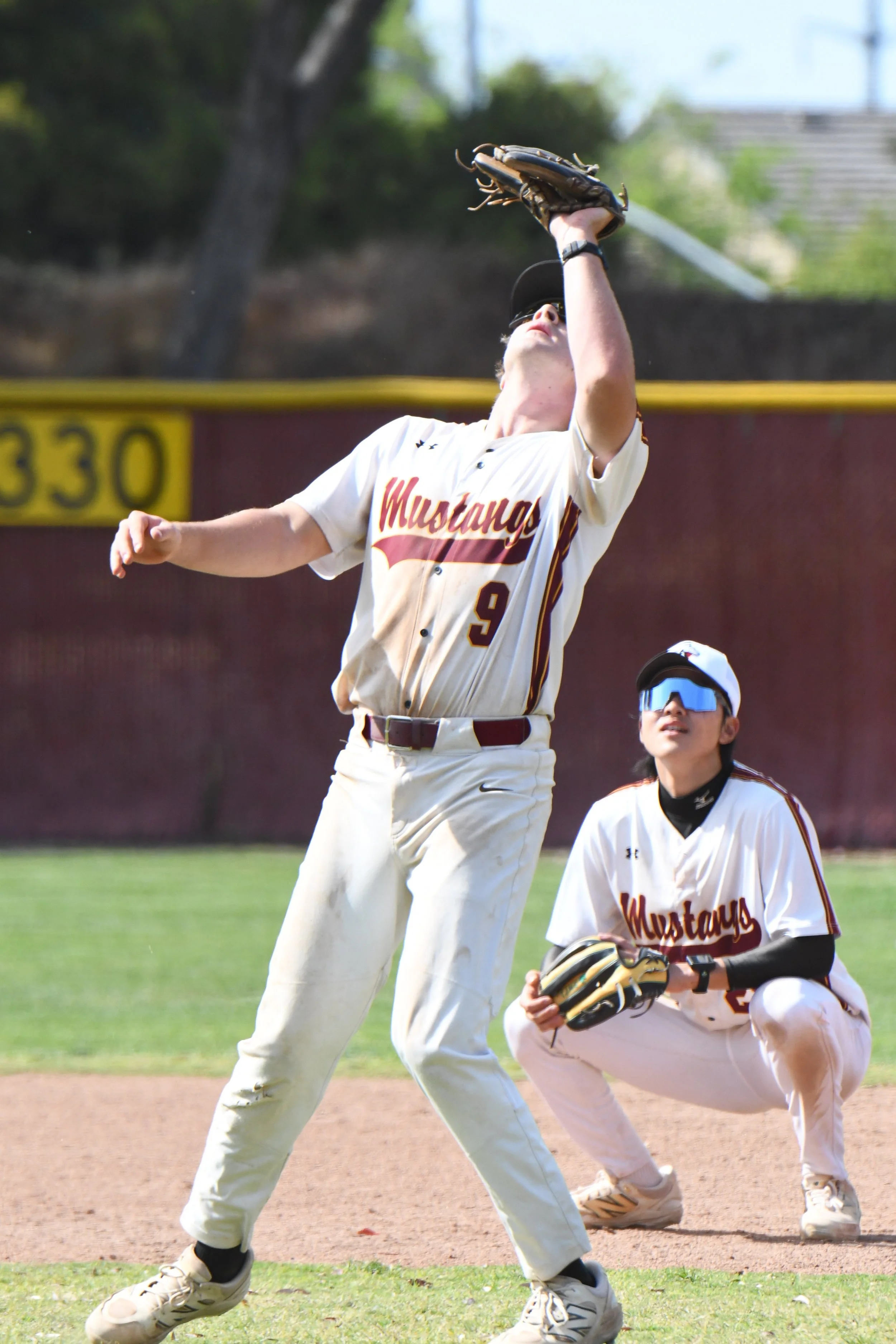 A swift step swung Jones’ body toward the plate. With all his momentum, the Los Medanos senior fired a fastball down the pipe to Jaxon Byrd. Byrd, on time, rifled it right back up the middle, but standing in center field was Cam Hegamin, who raced left, reached his glove up and made the catch.